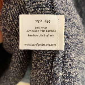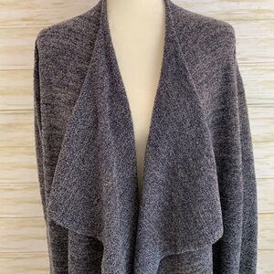 Barefoot Dreams Bamboo Chic Light cardigan. Navy blue heather nylon/bamboo rayon blend. Drape collar, linger in front. Womens size L/XL. Great used condition.