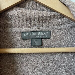 Barefoot Dreams Cardigan size L/XL in a beautiful brown. SO SOFT! Amazing for lounging around home or dress up for a day out! Would be adorable paired with leggings and UGGs for fall & winter. Pockets on both sides! Preloved condition- no major flaws!