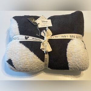 Barefoot Dreams Classic Disney Mickey & Minnie Mouse Throw NEW Size 54”X72” Color - Cream / Carbon. Cozy up with the wonderful world of Disney in our custom CozyChic Classic throw featuring Disney Mickey Mouse & Minnie Mouse. The loving silhouettes are knit in this throw with a hi-lo jacquard technique, creating a unique dimensional richness, while making it REVERSIBLE . A washed canvas patch is hand-embroidered in a deep red yarn with Mickey Mouse’s first appearance in, “1928”. 100% polyester