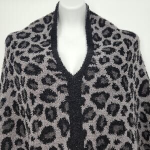 Barefoot Dreams Cozy Chic Black Gray Leopard Plush Plus Poncho Cape Women's OS