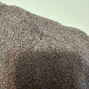 Pre owned but in good condition. Does have a tiny home on shoulder hem. As shown. Really not noticeable. No other stains or flaws. Mauve in color from smoke free pet friendly home