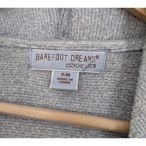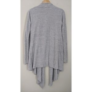 Very good pre-owned condition. Barefoot Dreams Cozy Chic Lite Blue and grey open cardigan. Island Wrap style, with no pockets. Drapery front. Size S/M.