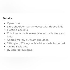 Barefoot Dreams Cozy Chic Lite Cliffside Wrap Cardigan O/S Black Graphite