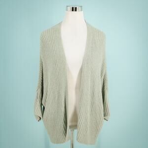 Barefoot Dreams Cozy Chic Lite Size L Large XL Grey Gray Open Front Dolman Batwing Sleeve Ribbed Knit Nylon Rayon Blend Knit Shrug Cardigan Sweater- Style QVWCL1183