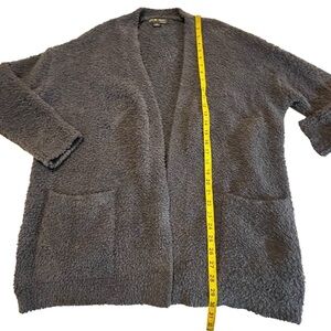 Barefoot Dreams Cozy Chic Longline Open Front Knit Cardigan Sweater Pockets S/M Purple fuzzy soft