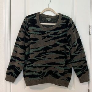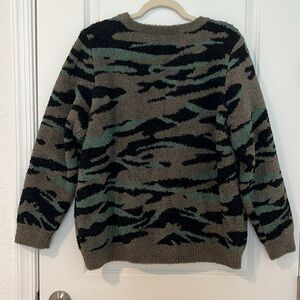 Barefoot Dreams Cozy Chic Seaside Crewneck Pullover Sweater Green Camo XL