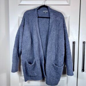 Barefoot Dreams CozyChic Heathered Blue Open Front Cardigan Sweater L/XL