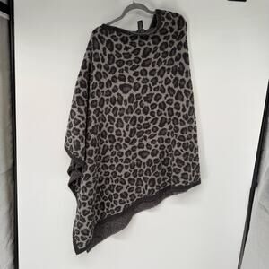Barefoot Dreams CozyChic Leopard Print Poncho Womens OS Plus Asymmetrical Hem