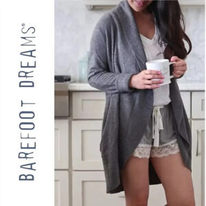 Add a touch of bohemian, casual, and classic to your wardrobe with this Barefoot Dreams CozyChic Lite Circle Cardigan in size medium. The heathered pattern and tight-knit fabric make it a perfect choice for any occasion. The cardigan features long sleeves, an open neckline, and a relaxed fit that is comfortable and stylish.