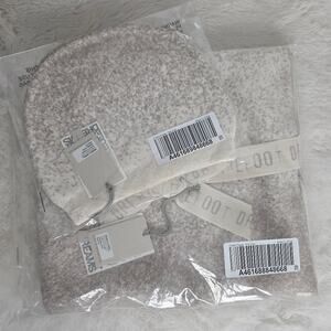 Barefoot Dreams CozyChic Lite Confetti Scarf & Beanie Set Cream Taupe NWT