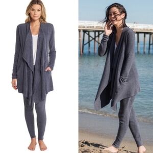Barefoot Dreams | CozyChic Lite Gray Draped Open Front Soft Cardigan