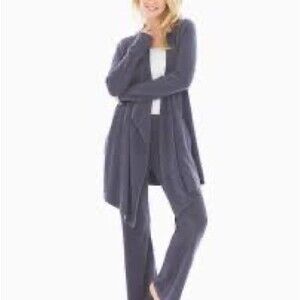 Barefoot Dreams CozyChic Lite Island Wrap Open Cardigan Slate Blue - Size - S/M Channel the ease and relaxed feel of the islands with this beautiful drape-front wrap cardigan that can be worn day and night. Convenient side pockets and rolled hem give this super soft and cozy style its travel-worthy status. Style 903 5% Nylon, 25% Rayon. Machine wash cold in the gentle cycle. Lay flat to dry or tumble dry low. Steam or cool iron if necessary. For best care, do not use bleach, dryer sheets, or fabric softener. Size S/M: Pit -to-pit: 22" Collar to hem down center back: 38" Excellent condition. Smoke & pet free home. Bundle & Save! Ship up to 5 lbs in one box.