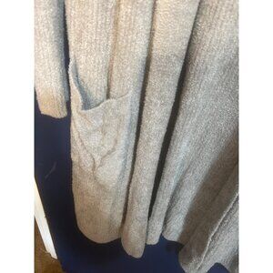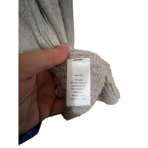 This cardigan sweater robe by Barefoot Dreams offers a cozy and stylish option for lounging. Crafted from a soft nylon-rayon blend, it features a comfortable fit with practical pockets. The light knit design is perfect for layering in cooler weather, providing warmth and comfort. It is missing the belt.