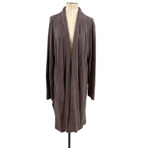 Barefoot Dreams CozyChic Lite Knit Long Open Cardigan in Brown / Gray color