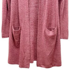 Barefoot Dreams CozyChic Lite Relaxed Hooded Long Cardigan Berry Rose Size Small