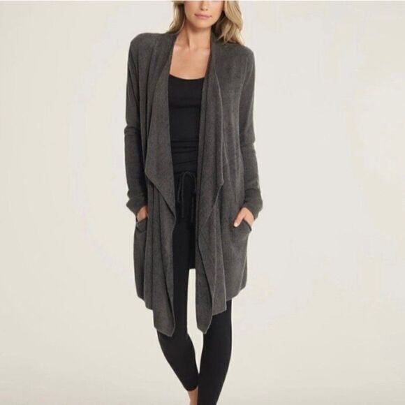 Barefoot Dreams Cozy Chic Lite Island Wrap Cardigan Sweater Carbon Gray S/M