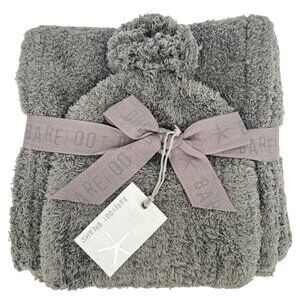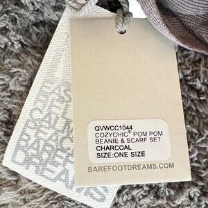 Barefoot Dreams CozyChic Pom Pom Beanie Scarf Set Charcoal One Size NWT