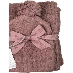 Barefoot Dreams CozyChic Pom Pom Beanie & Scarf Set Chestnut One Size NWT