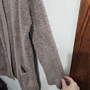 Barefoot Dreams CozyChic Ribbed Knit Trim Fuzzy Brown Womens Cardigan Sweater. Size Large. Front Pockets. Very warm. Excellent condition!