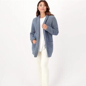 Barefoot Dreams CozyChic Ribbed Open Front Cardigan Size 1X EUC Blue Mirage