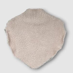 Soft plush knit, striped beige and white pattern, turtleneck collar, pullover style, sleeveless poncho cut, cozy and warm, Barefoot Dreams CozyChic fabric