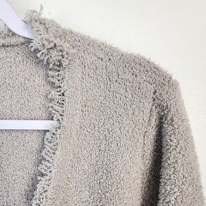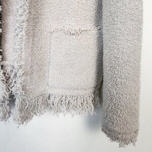 Barefoot Dreams Cozychic Light Gray Fringed Jacket Cardigan Sweater Size Medium