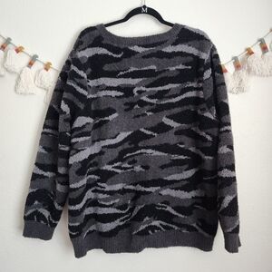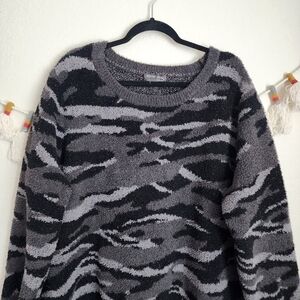 Barefoot Dreams Cozychic Seaside Camo Crewneck Knit Black Pullover Soft Comfy 2x
