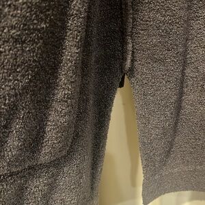 Luxurious comfort, quality, no noted flaws, great condition, two pockets on front of cardigan, hood, and side slits.