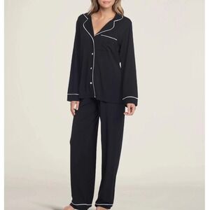 Barefoot Dreams Luxe Milk Jersey Pajamas Black w/ Pearl Piping Size Large