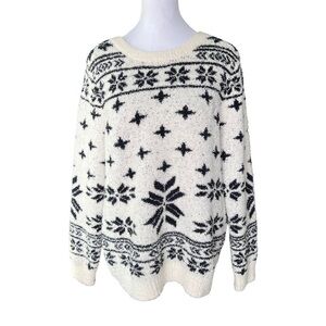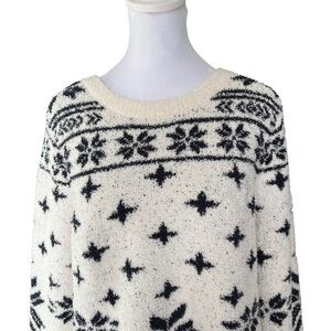 Barefoot Dreams - NWT Cozychic Seaside Crew Neck Sweater Cream Fair Isle Sz M