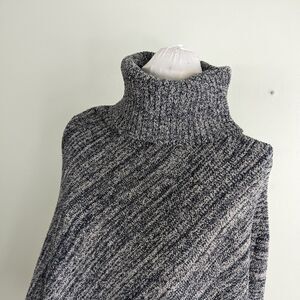 Barefoot Dreams Poncho Sweater OS Gray Blue Pullover Cozy Chic Turtleneck 801