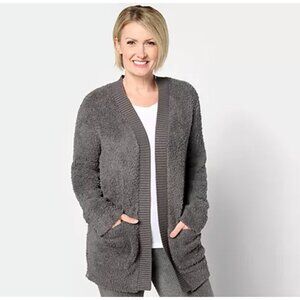 Barefoot Dreams Women Cardigan ~ CozyChic Ribbed Knit Trim Jacket Gray L A615050