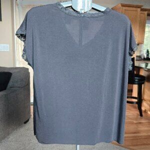 Barefoot Dreams sz medium Luxe Milk Jersey V Neck / lace short sleeve top