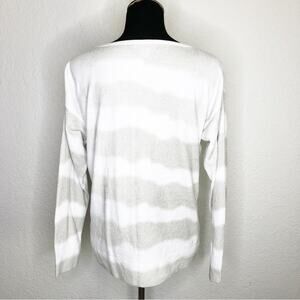 Barefoot Dreams white sage green gray striped fuzzy knit sweater top size Medium