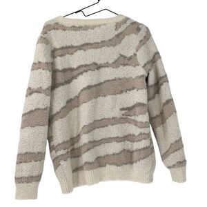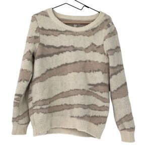 Barefoot Dreams Gray Beige Cozy Chic Knit Seaside Camo Crew Neck Sweater Small