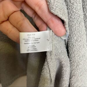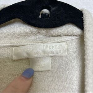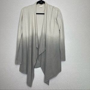 •Features: Grey/white ombré open front cardigan wrap. Long sleeves with front waterfall drape. This cardigan is textured and meant to have a fuzzy look.