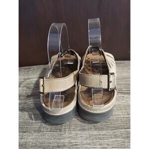Barefoot Freedom Sandals Womens 6.5 Wide Sandy Elastic Ankle Buckle Tan Leather