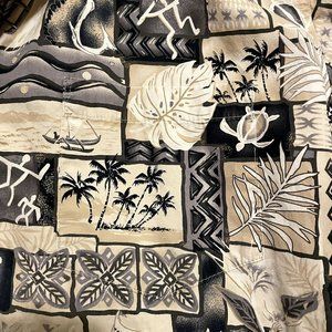 Barefoot in Paradise Blue and Tan Tapa Print 100% Cotton Men's Hawaiian Shirt XL