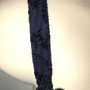 Twinkle-flocked velvety flower pattern on stretch mesh lace lower cups, back wing, and front shoulder strap; stretch lace top cup and front bottom frame; rhinestone bow center; contrast mesh lace lining