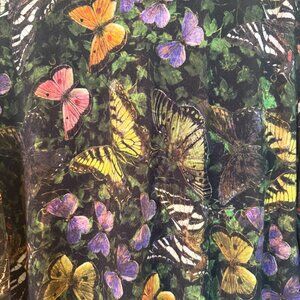I recently lost a lot of weight and am selling many beautiful pieces in my closet that no longer fit. I wore this tee only twice. It is a swing tee with straignt, but not tight arms. The fabric is a perfect weight so the tee hangs beautifully. Great unique, versatile piece for your wardrobe.