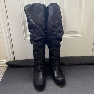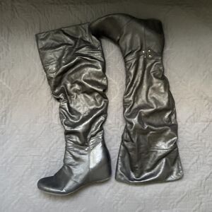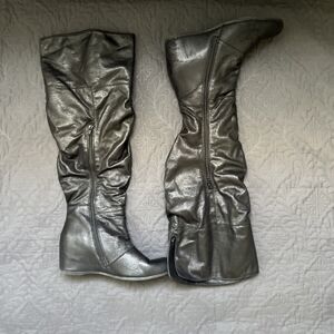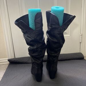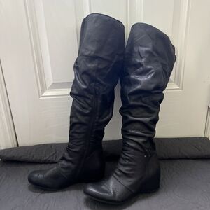 Baretraps Black Slouchy Faux Suede Shiny Valry Tall Wedge Boot SZ10M Winter Goth