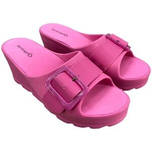 Vibrant pink wedge slip on sandals in size 9 from BareTraps. Perfect summer sandal for the resort, pool, or to punch up an outfit.