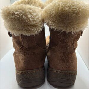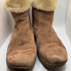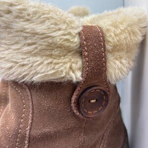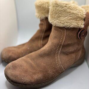 Cozy up in these Baretraps winter boots! Featuring a brown suede upper, warm faux fur lining, and a durable outsole for grip. Zip closure and button accent. Pre-owned, good condition with minor wear. See photos. Size as marked by measurements (please confirm)