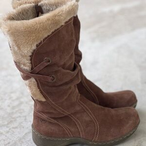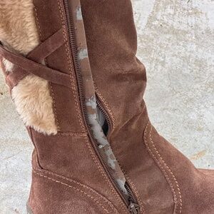 Bare Traps boots, brown suede boots, faux fur lined winter boots, women’s 8.5 boots, cozy winter footwear, leather suede boots, cold weather boots, mid-calf boots, Bare Traps women’s shoes