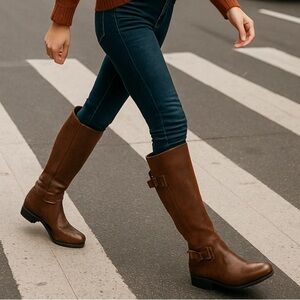 tall brown boots, Baretraps Carmen, women’s riding boots, equestrian style boots, casual fall boots, comfy low heel boots, classic tall boots size 6.5