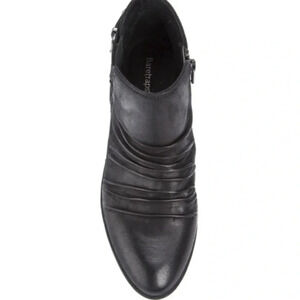You'll love the ankle accents and ruched detailing of the Guenna in solid black, this heeled bootie is the perfect pair for any casual look.