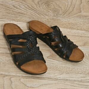 Baretraps Joneva Wedge Sandal Slides Womens Size 8M Black Cushioned Footbed