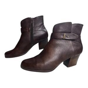 Baretraps Lane Boots Womens Size 10M Brown Ankle Block Heel Zip Strap Comfort