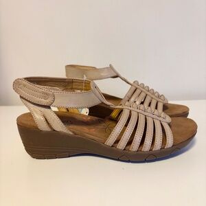 Baretraps Memory Foam Hermine Comfort Slingback Braided Adjustable Faux Leather Sandals in Tan and Womens US Shoe Size 6.5. Brand new in box.