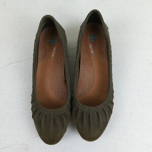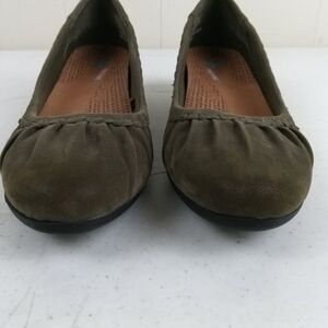 Step out in style with these chic olive suede flats. Perfect for any occasion, these shoes offer both comfort and elegance.